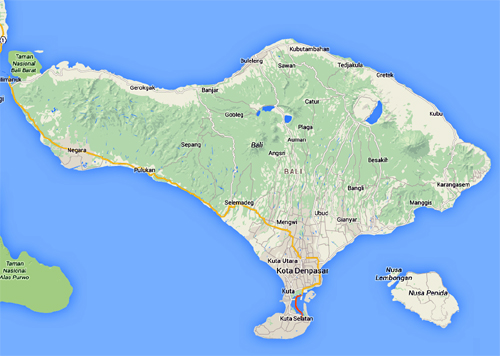 pratiques Monnaie : Rupiah (1euro = 13000 RPS) Conduite automobile : A gauche. Electricité : 220V-50 Hz Prise du type C,F Eau de ville : Non potable. Cartes de crédit : Acceptées dans les centres touristiques Langues : Balinais qui est la langue commune à toutes les castes ; chaque caste ayant sa propre langue. Dans les centres touristiques, on parle anglais. Fuseau horaire : GMT +8 Vaccins : L’Indonésie est classée en zone 3 pour la malaria. Le risque est variable suivant la région. Risque de dengue Vêtements : Shorts, T-Shirts, pantacourts, pantalons légers, un sweat pour les soi-rées, un vêtement de pluie léger, chapeau à larges bords Transports : Les transports en commun sont anarchiques et peu fiables. Les taxis et les minibus collectifs, nommés « Bemos », pratiquent des tarifs à la « tête du client » ! La compagnie Perama (www.peramatour.com) déssert les principales villes et possède des bus modernes. Us et coutumes: En pays hindouiste, les codes vestimentaires sont souples, l’usage du monokini sur les plages ne va pas enfreindre les tabous ! Pour visiter les temples, les bras ne peuvent pas être dénudés et les vêtements pas révélateurs. Les dames ne peuvent pas les visiter pendant leurs règles. Durant cette période, elles sont «sebel » c’est-à-dire considérées comme rituellement impures. Urgences : Numéro national:122 Ambulance:118 SAR:115 Police:110 Indicatif téléphonique : 62 Carte Cliquez sur le dessin |